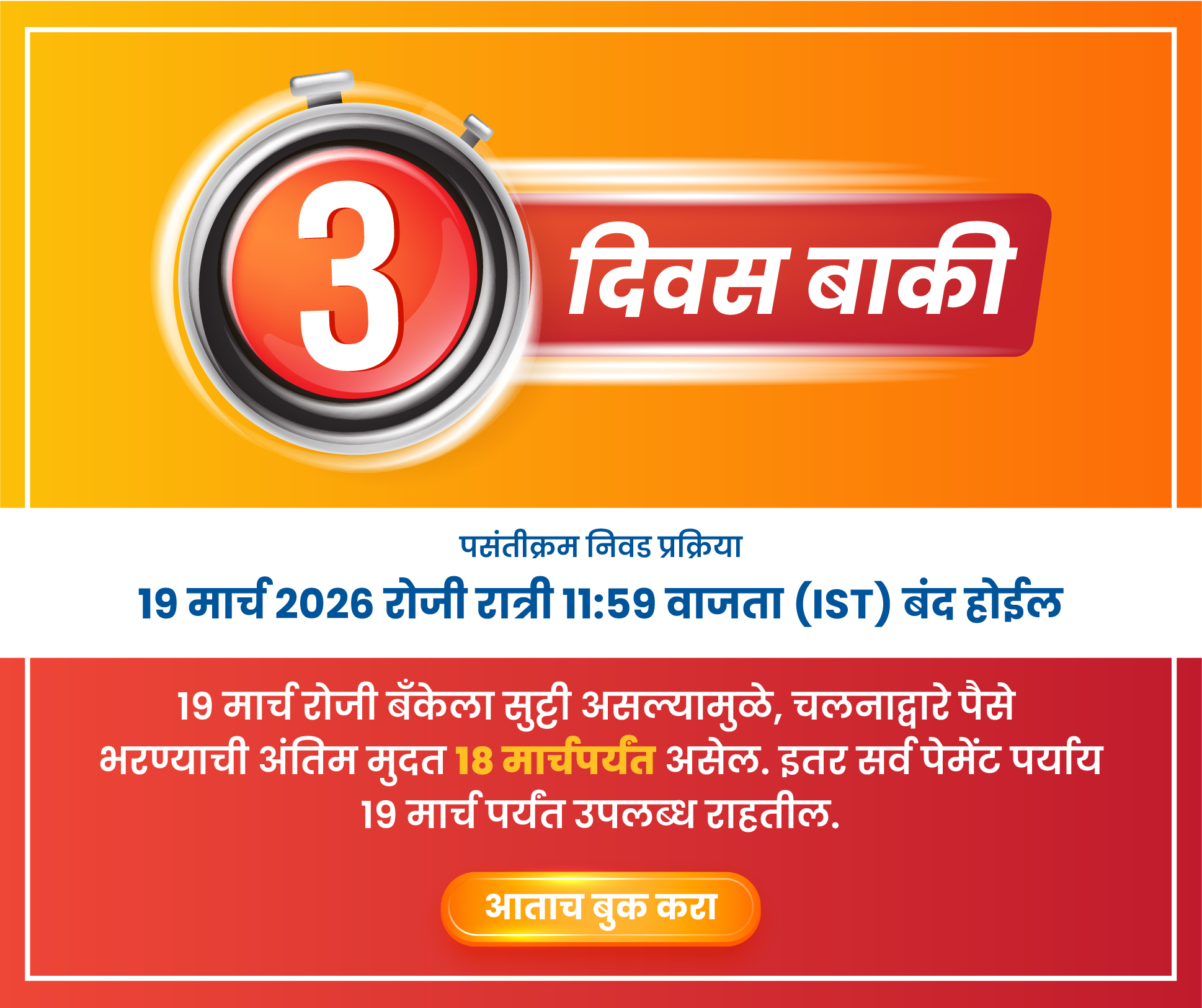 डिसेंबर २०२५ च्या योजनेसाठी पसंती निवडण्याची विंडो 11 फेब्रुवारी 2026 रोजी उघडेल. रजिस्ट्रेशन सध्या सुरू आहे.